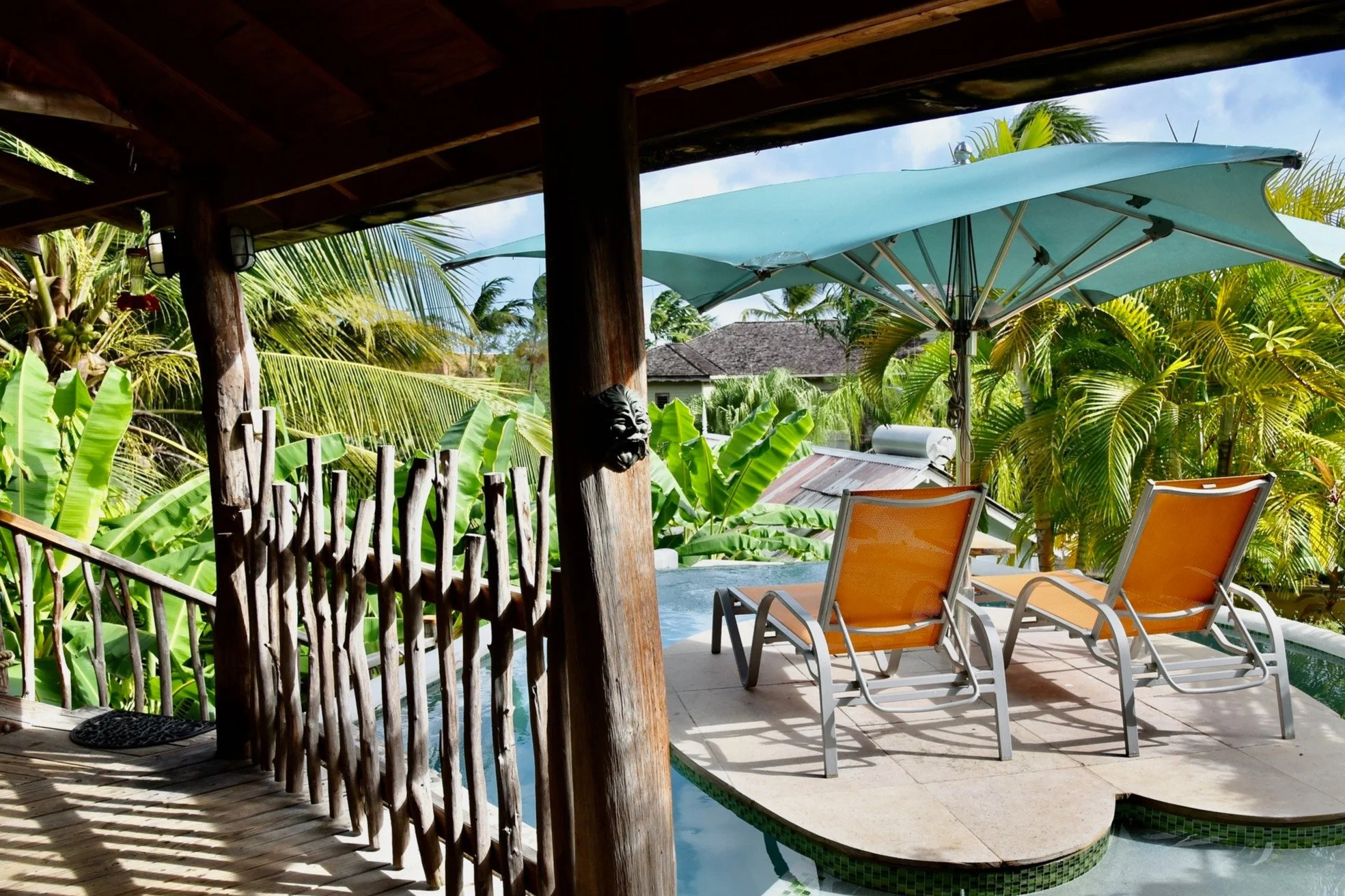 A colourful Caribbean cottage with private veranda, garden and plunge pool